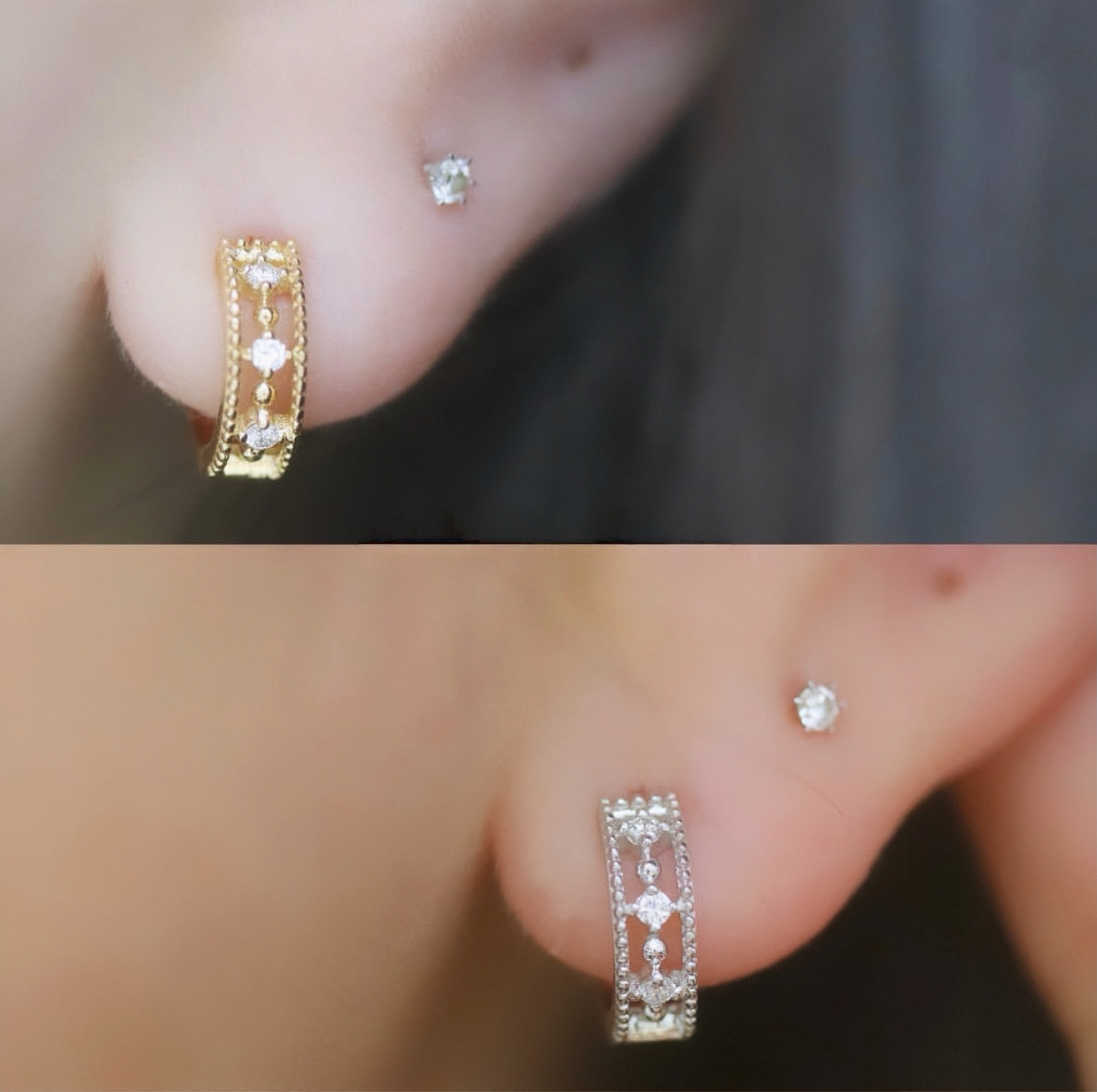 Milgrain Filigree Diamond Hoop Earrings