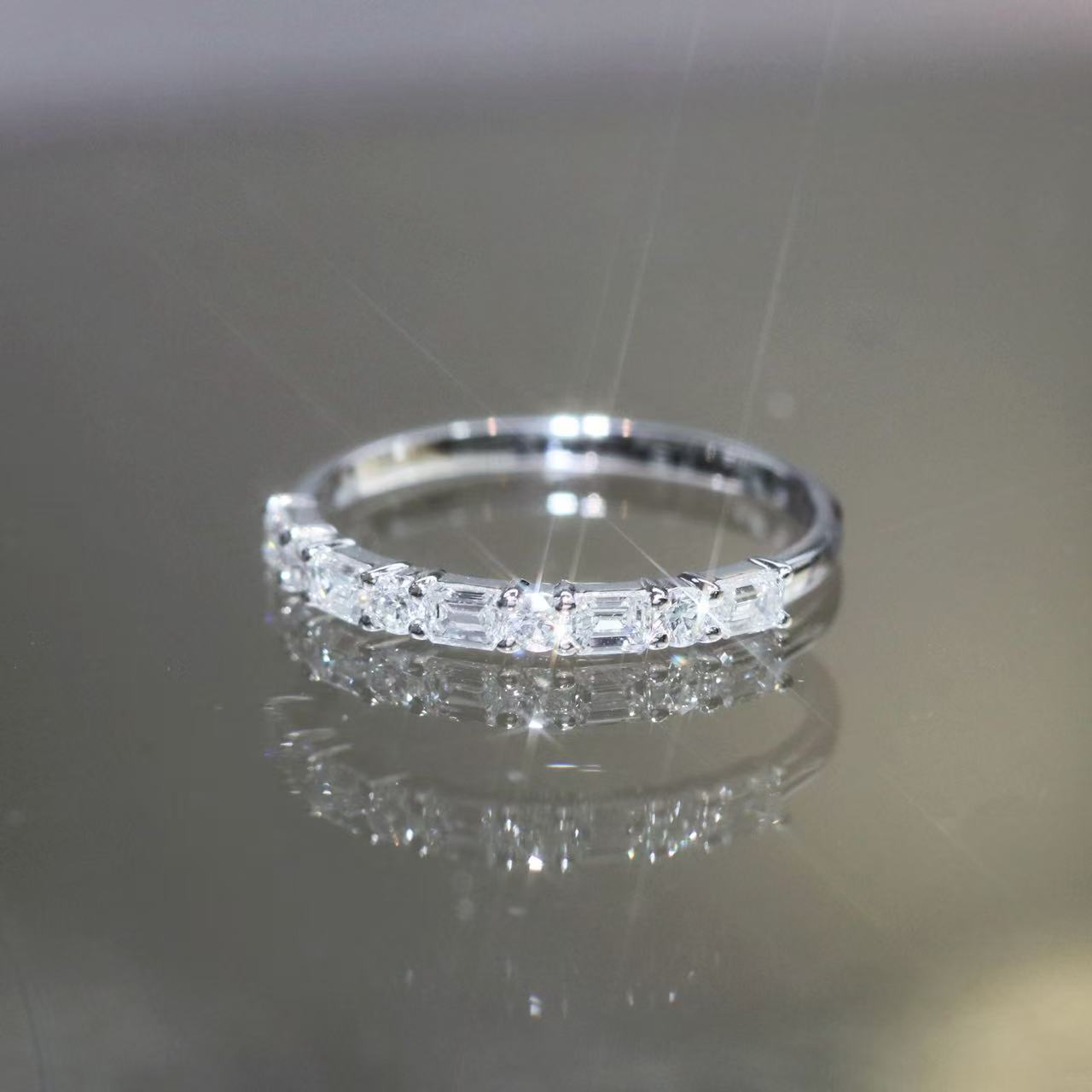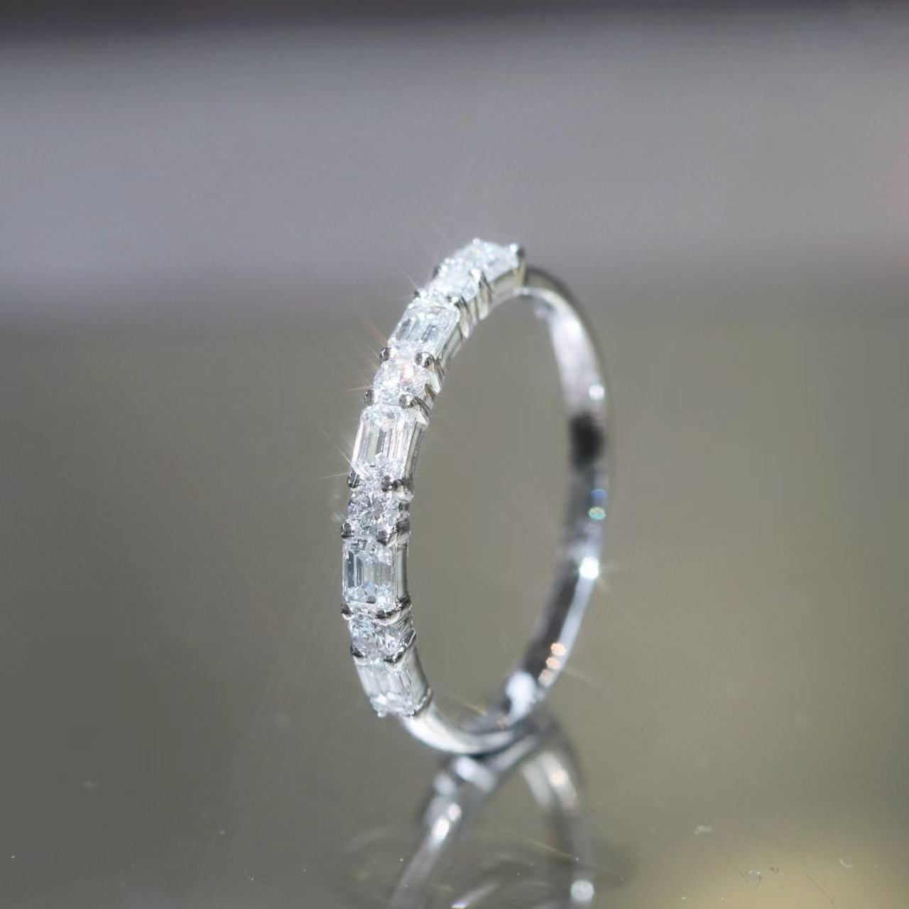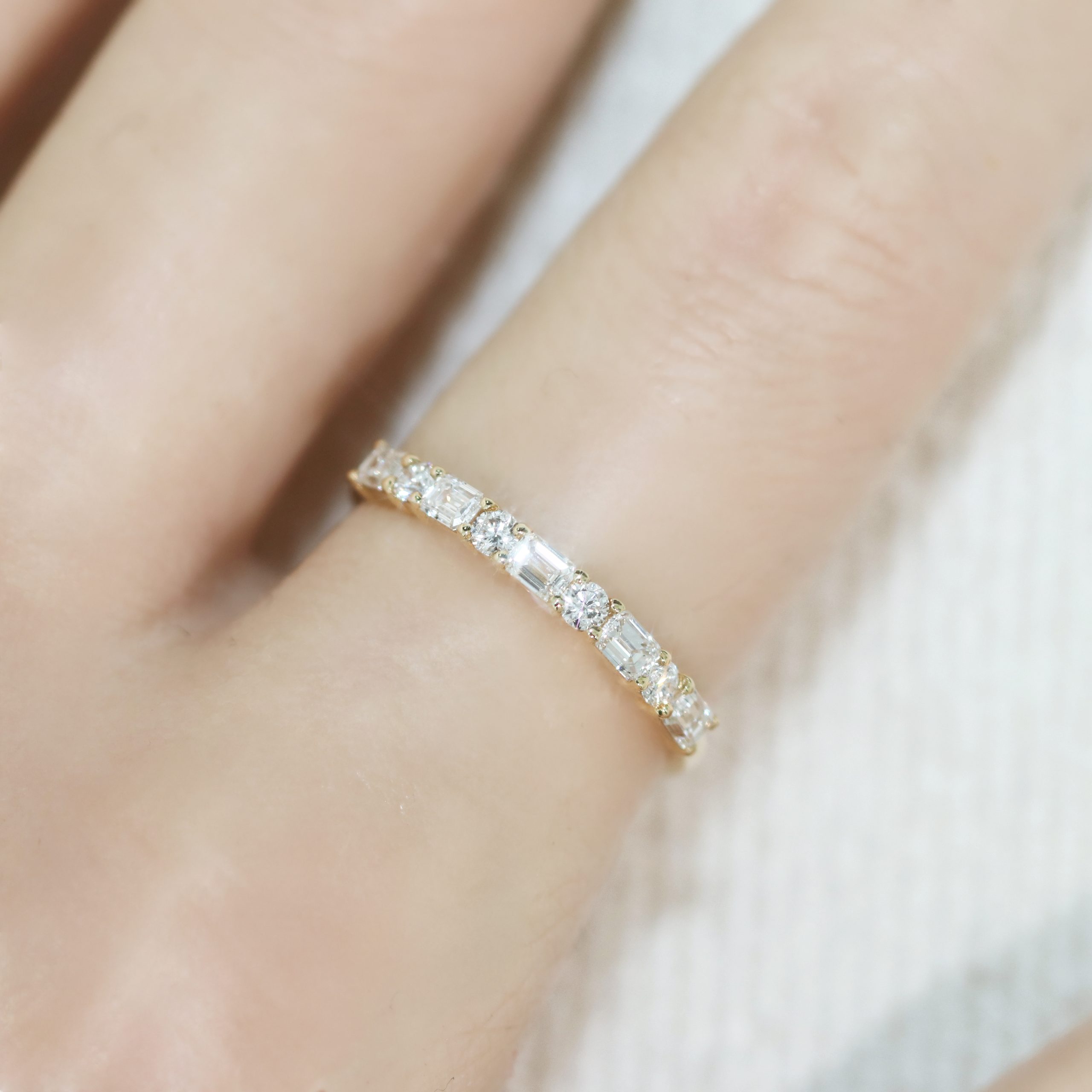 Round & Emerald Cut Half Eternity Diamond Ring