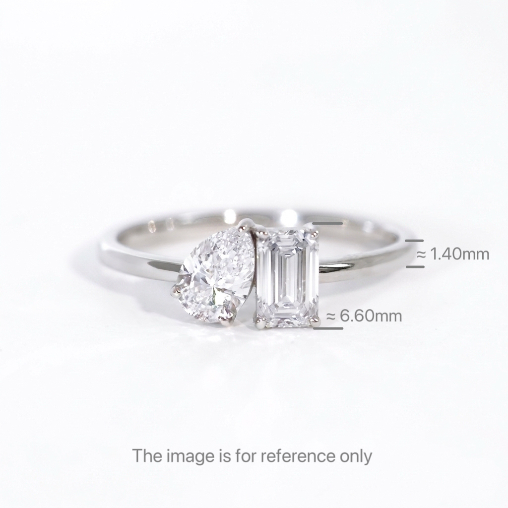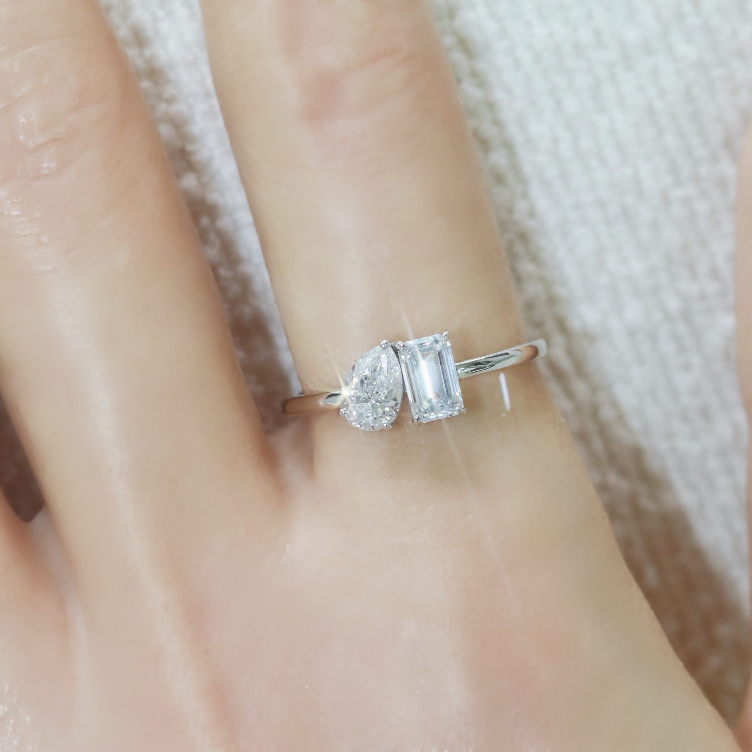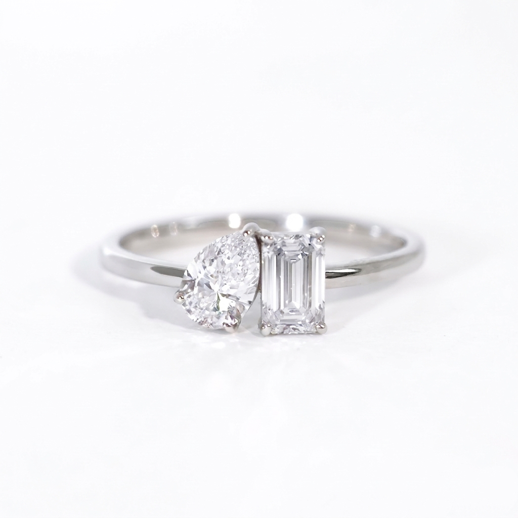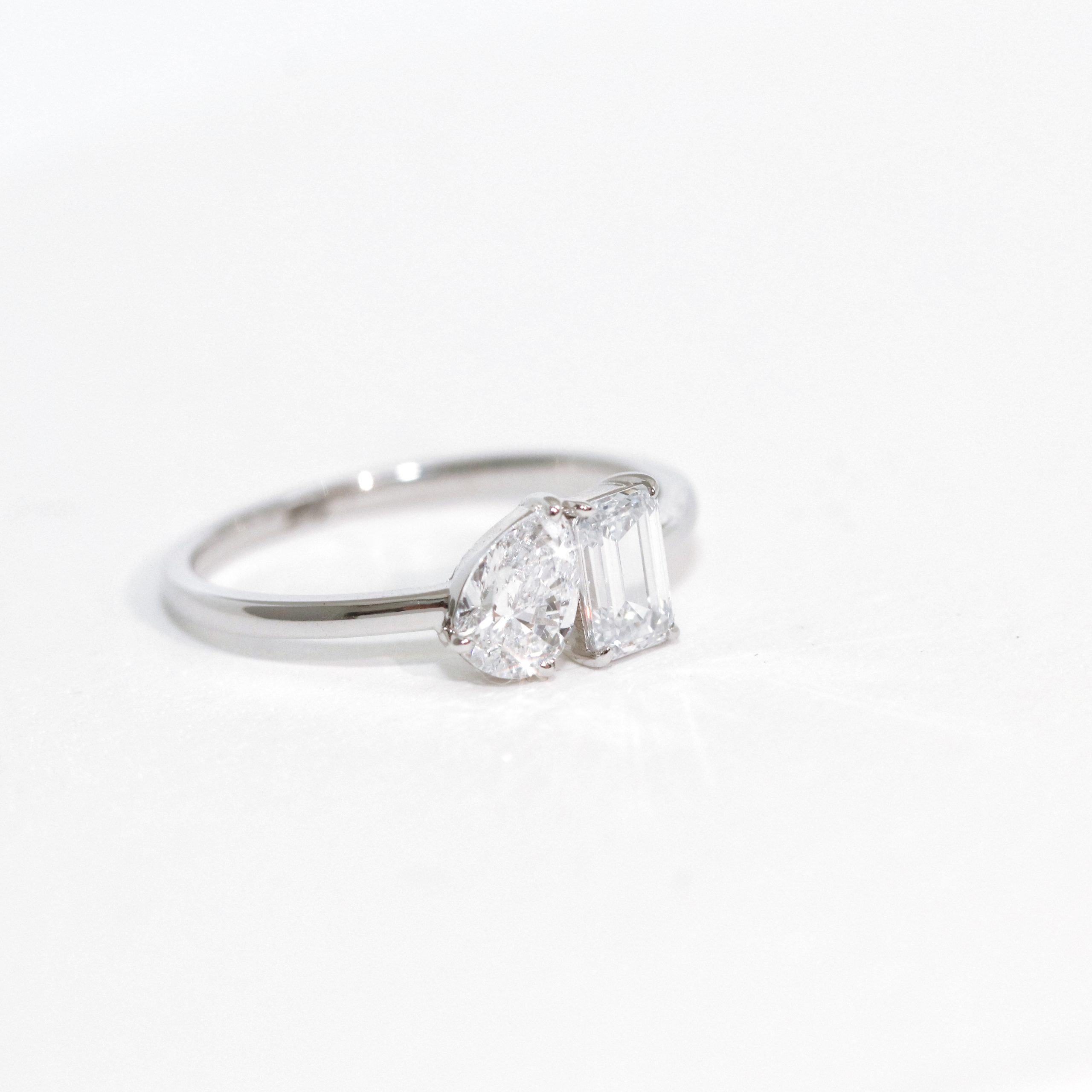 Toi et Moi Pear and Emerald Cut Diamond Ring