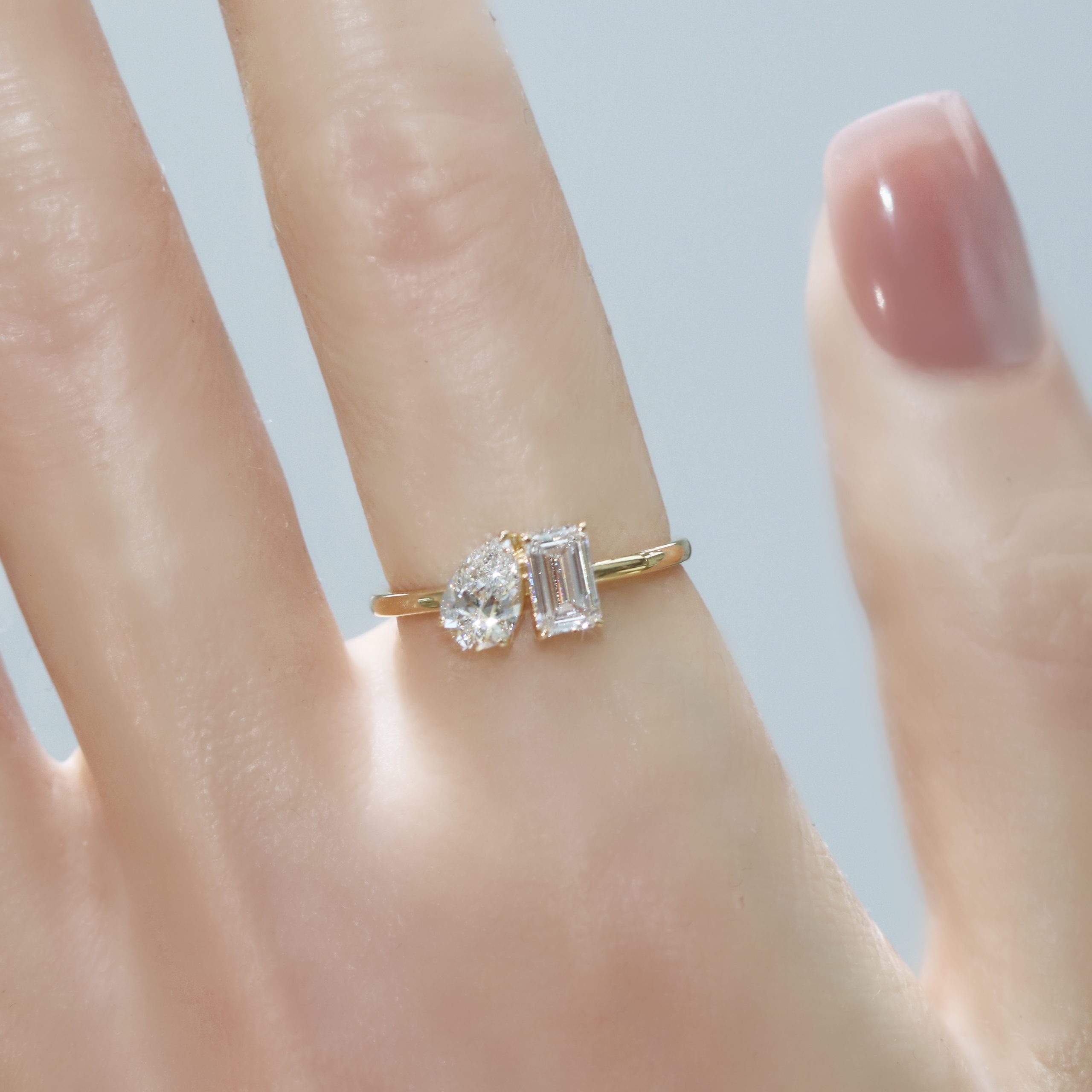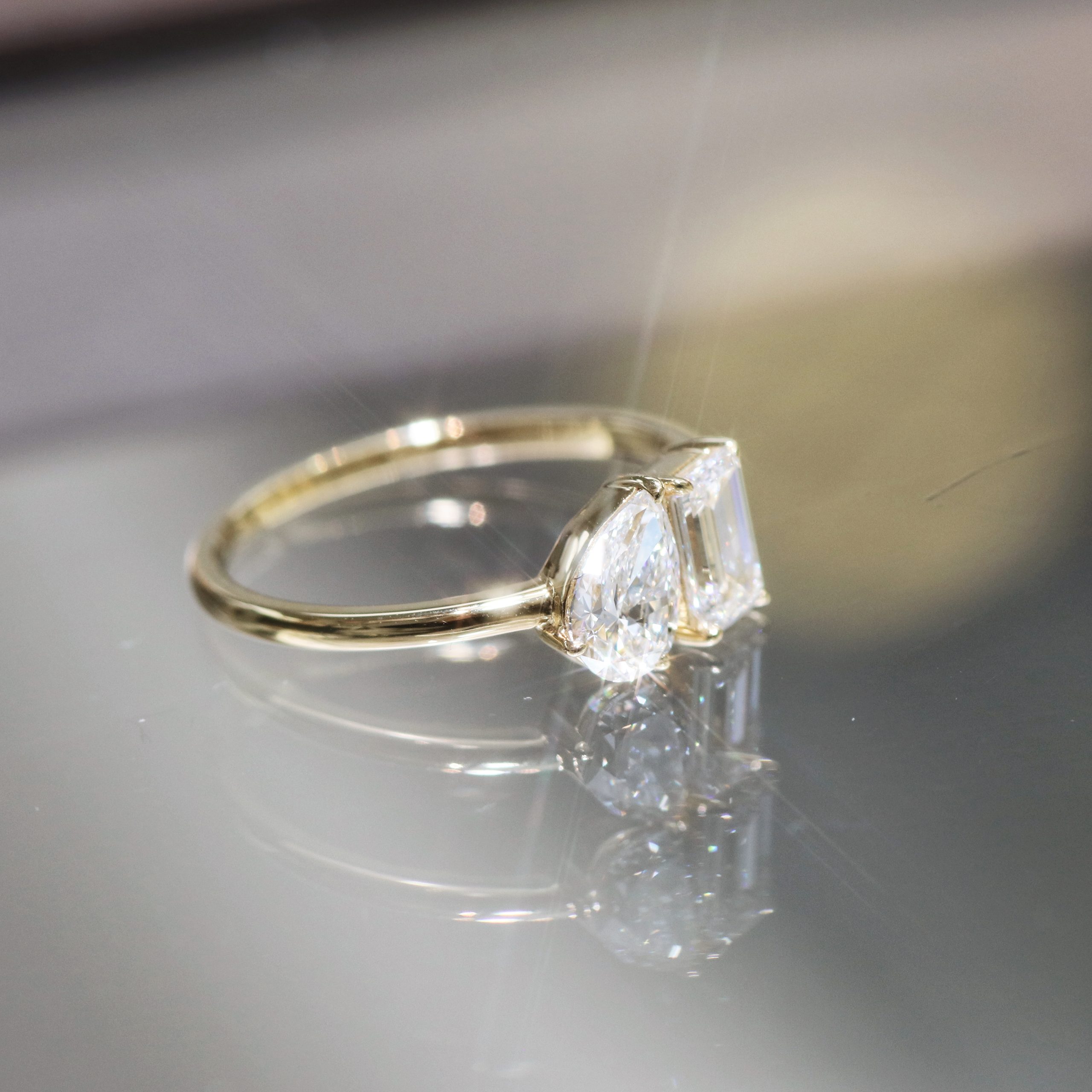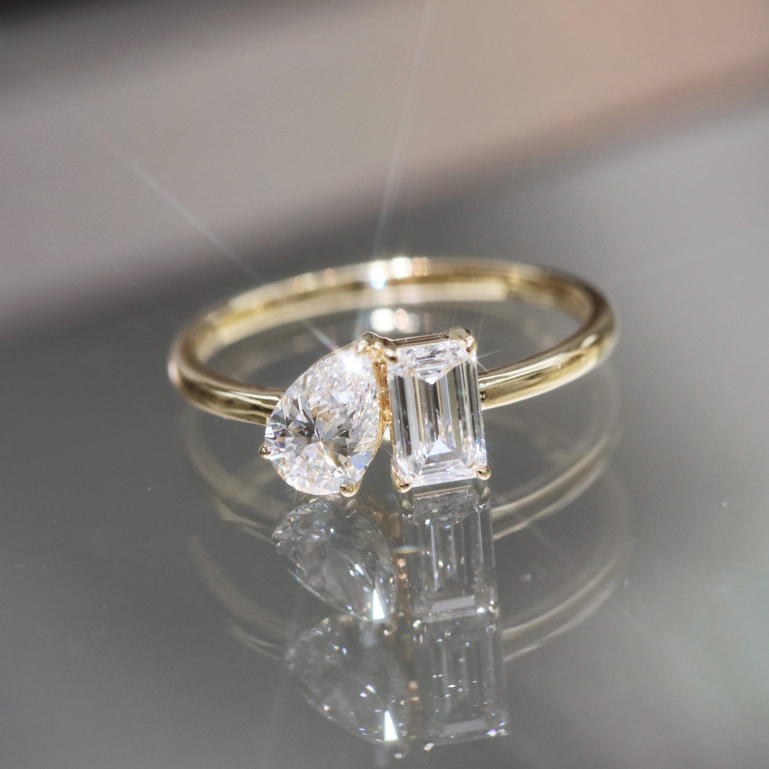 Toi et Moi Pear and Emerald Cut Diamond Ring
